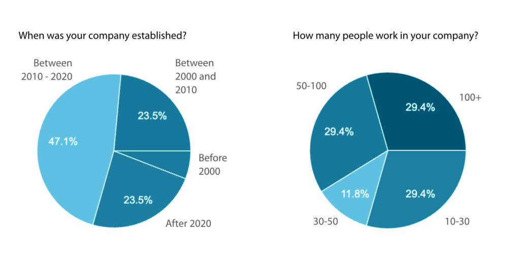 While a large number of companies are very export orientatded (47%), the same number of companies export less than 20% of their services. This makes sense as the domestic economy is growing rapidly which also increases the demand for IT and digital services exponentially.